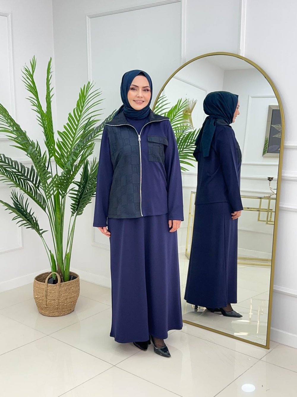 AMBER CEKETLİ ELBİSE - LACİVERT