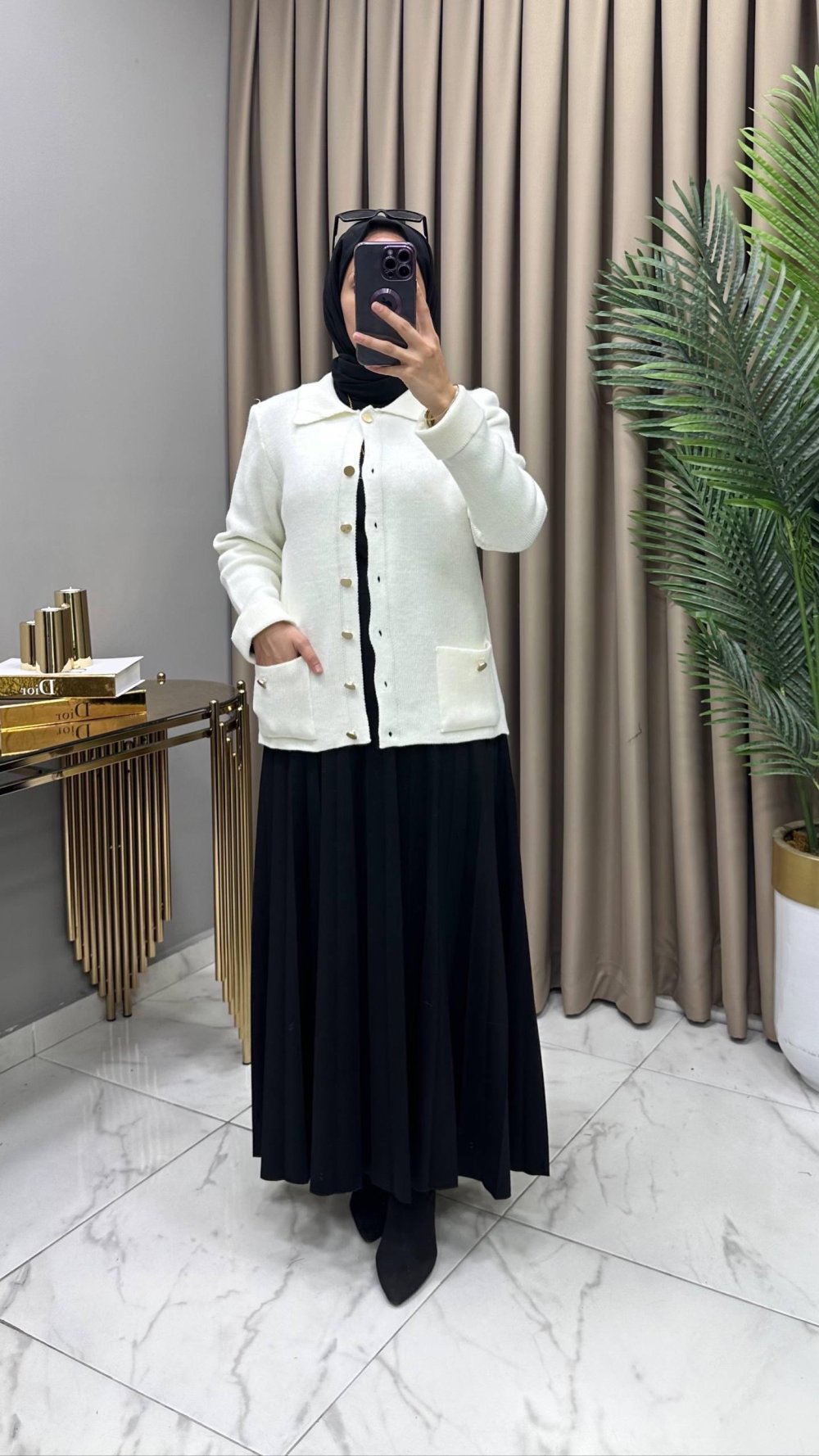 Ayla Çelik Örme Triko Hırka Ekru