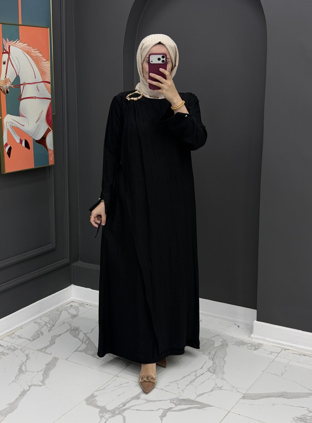 Ayperi Uzun Elbise - Siyah