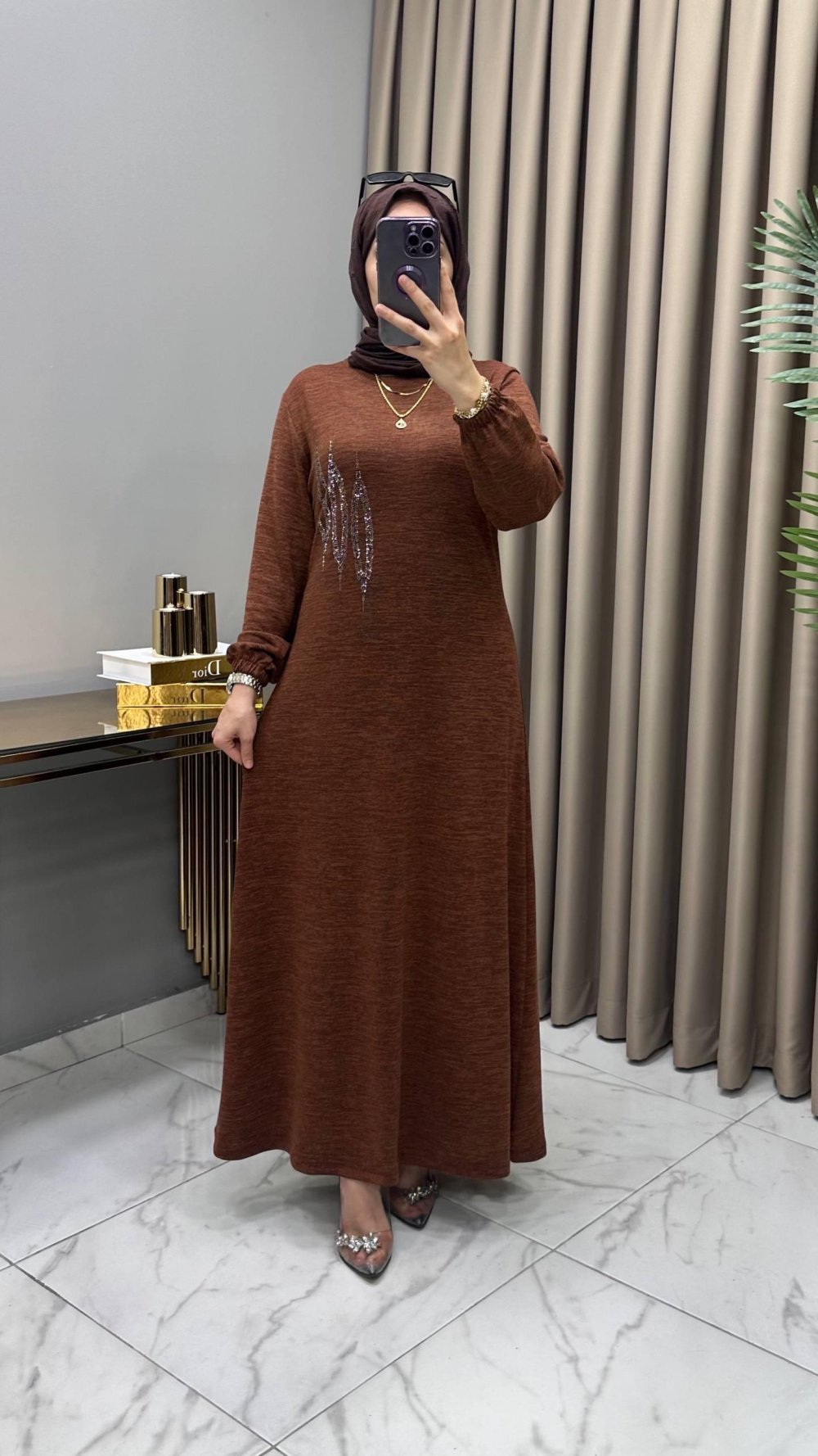 Çağla Triko Elbise Kahve