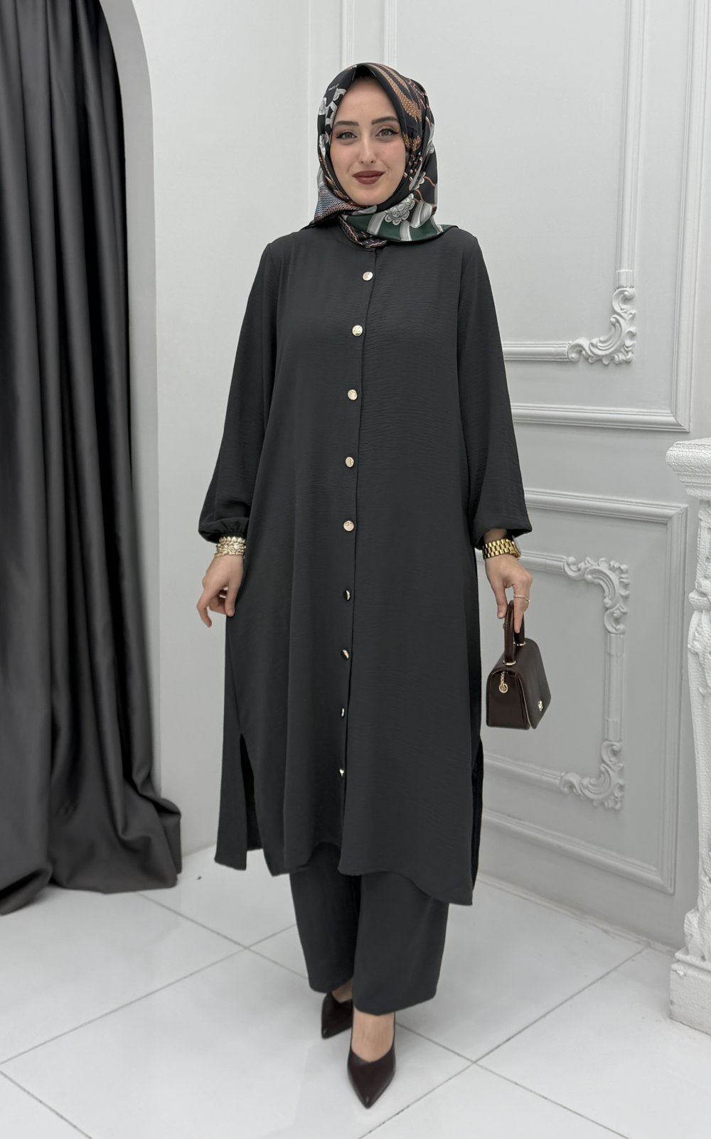 Göksu Takım , hem iş hem de günlük hayatınızda rahatlıkla tercih edebileceğiniz çok yönlü bir parçadır. Şıklığı konforla buluşturan bu tasarım, sezonun en gözde modellerinden biri olacak!