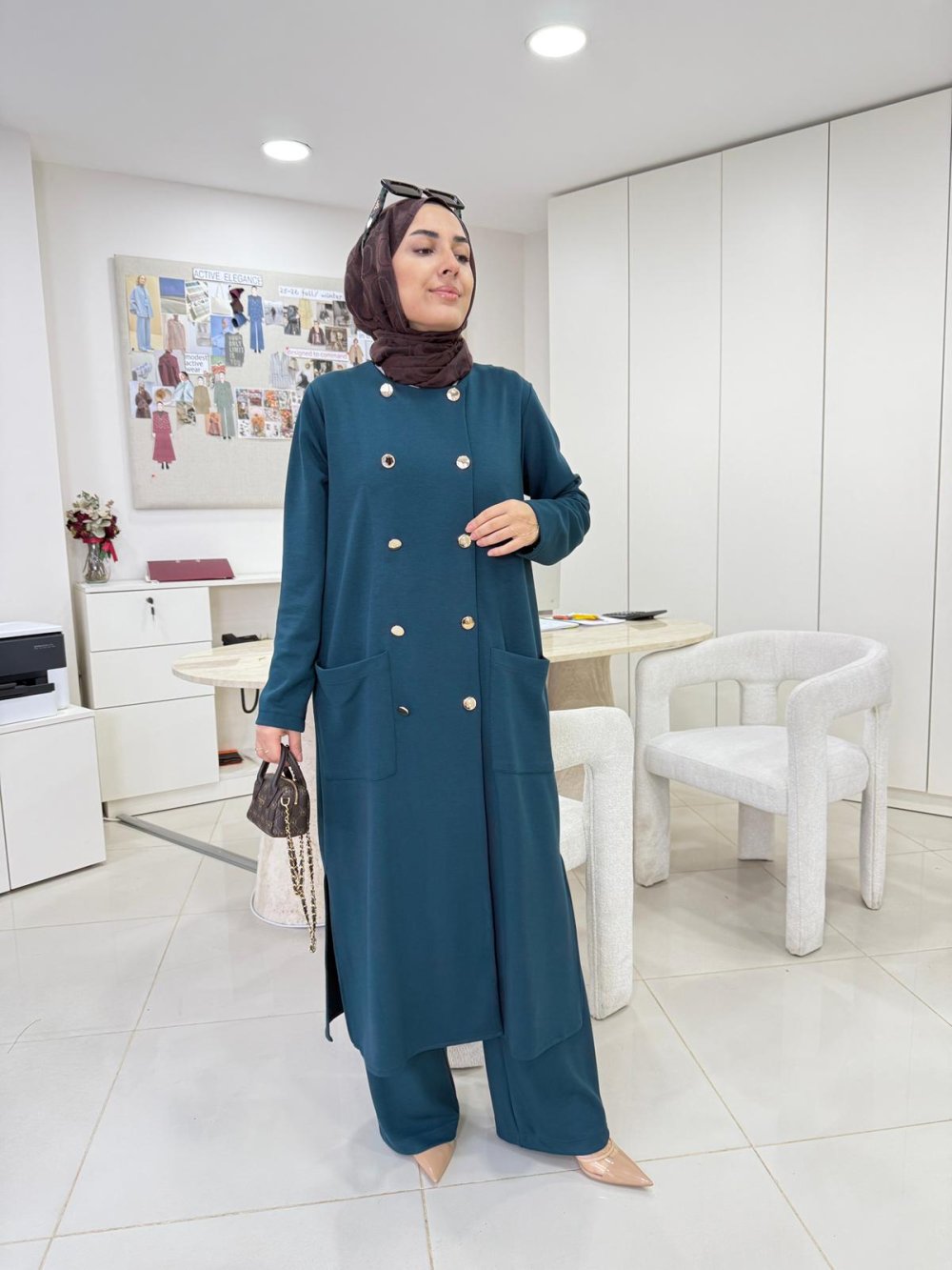 Gold Düğmeli Oysho Takım Petrol Yeşili