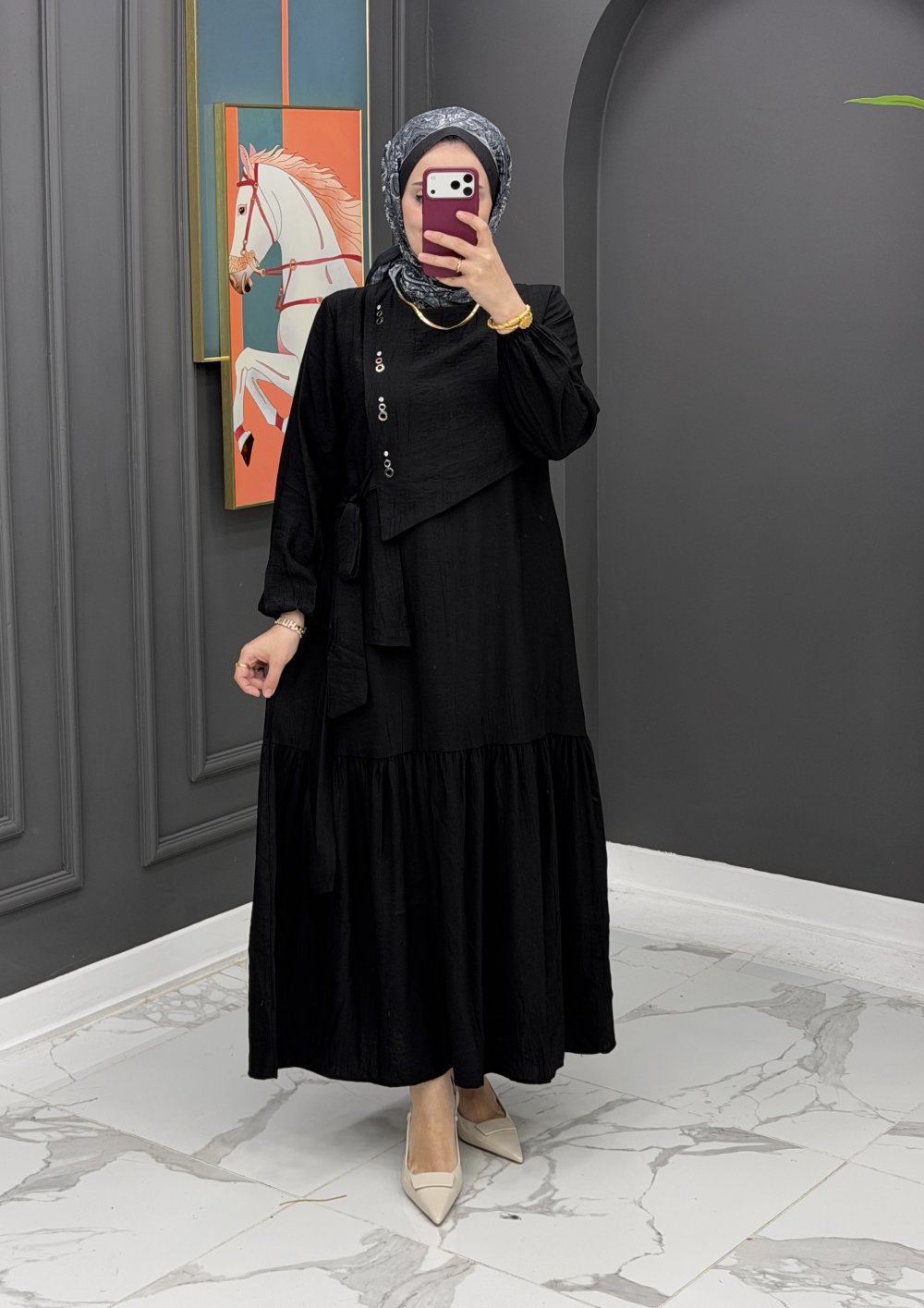 Gülseli elbise - Siyah