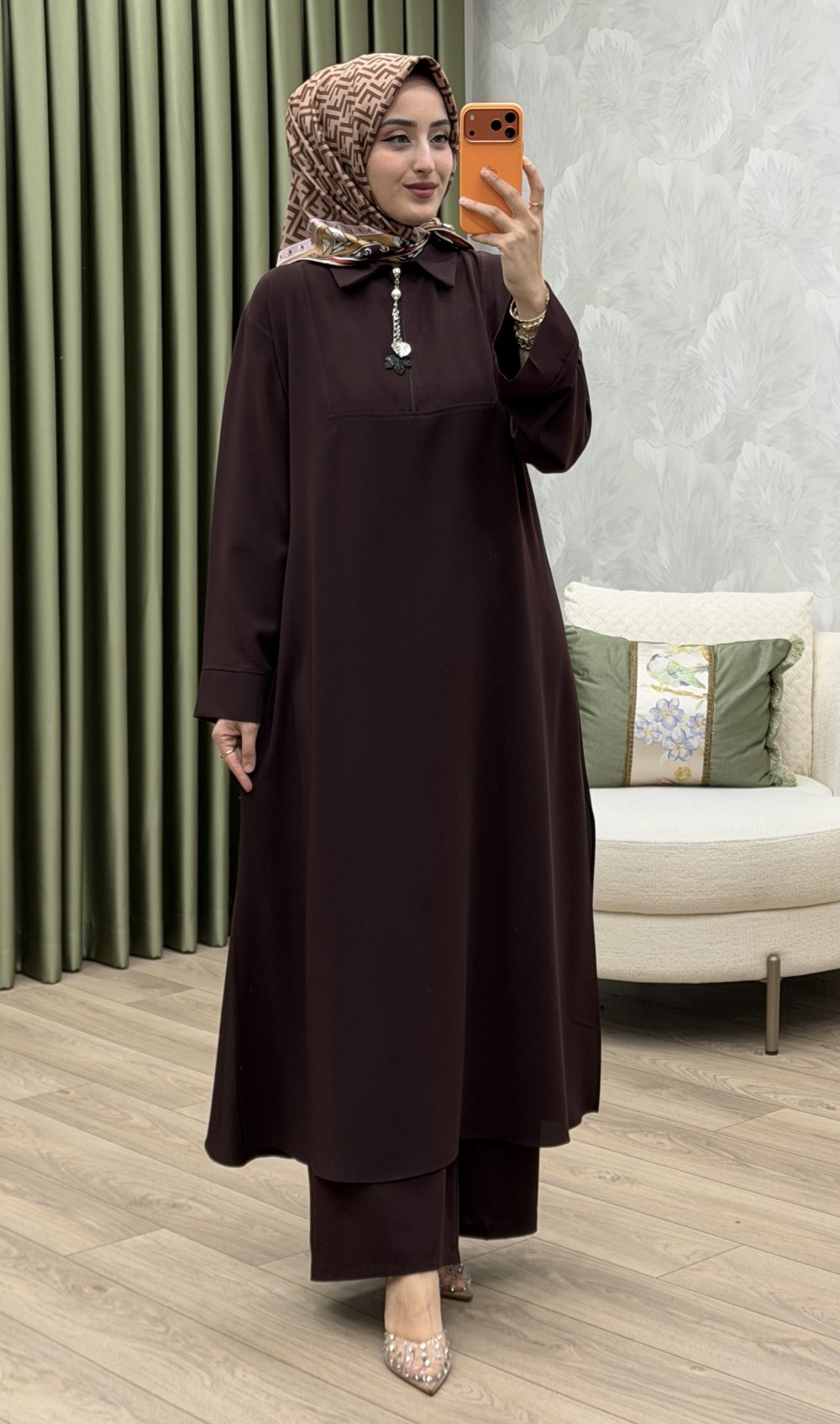 Hicran Takım,hem iş hem de günlük hayatınızda rahatlıkla tercih edebileceğiniz çok yönlü bir parçadır. Şıklığı konforla buluşturan bu tasarım, sezonun en gözde modellerinden biri olacak