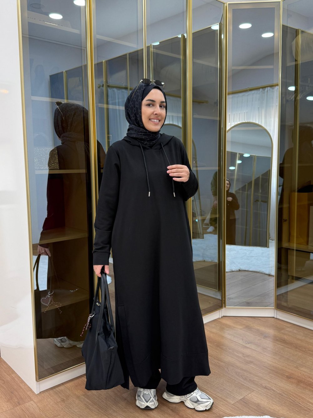 Kapüşonlu yırtmaçlı takım Siyah