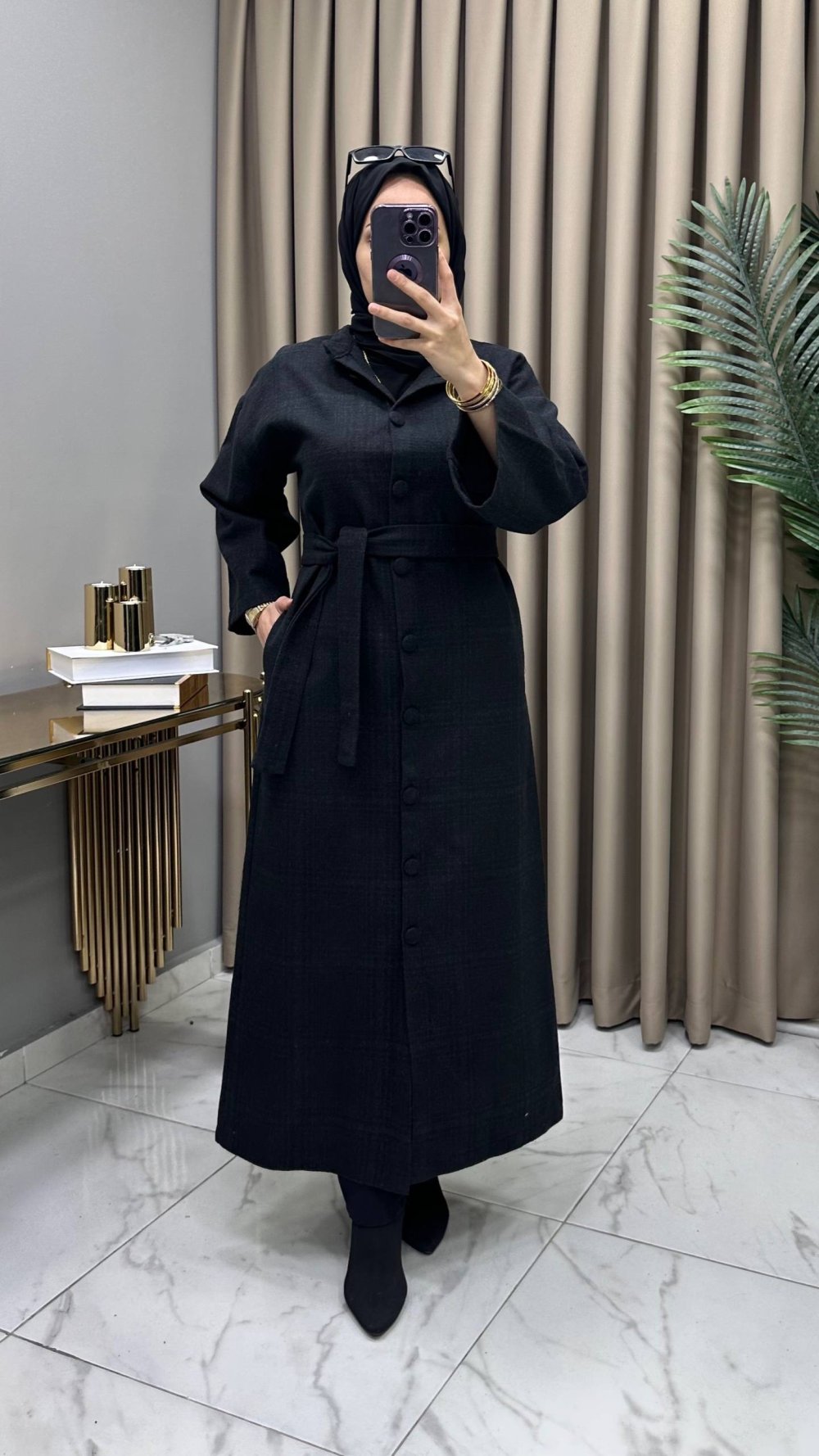 Boydan düğmeli, cepli, seyyar kemerli