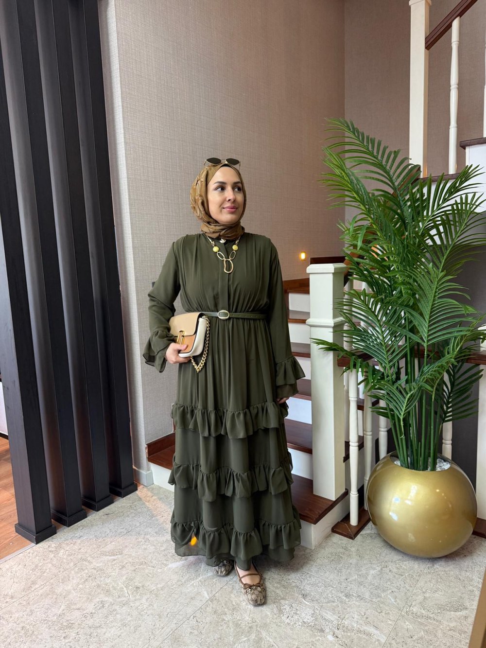 İçi komple denye astarlıdır. Elbise önü gizli düğmelidir, boynunda gold düğme detayı bulunmaktadır. Beli lastiklidir, kemer hediyemizdir.