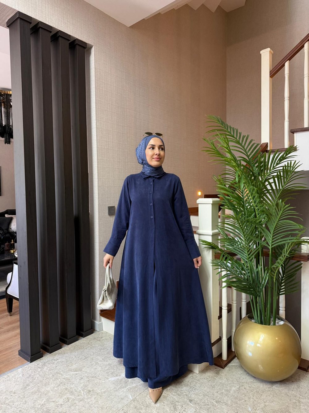 Tunik boy 138 cm’dir. Önde düğme ve yırtmaç detayı mevcuttur.