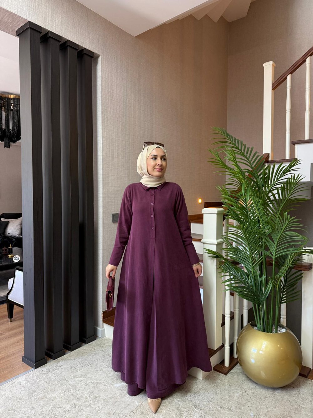 Tunik boy 138 cm’dir. Önde düğme ve yırtmaç detayı mevcuttur.