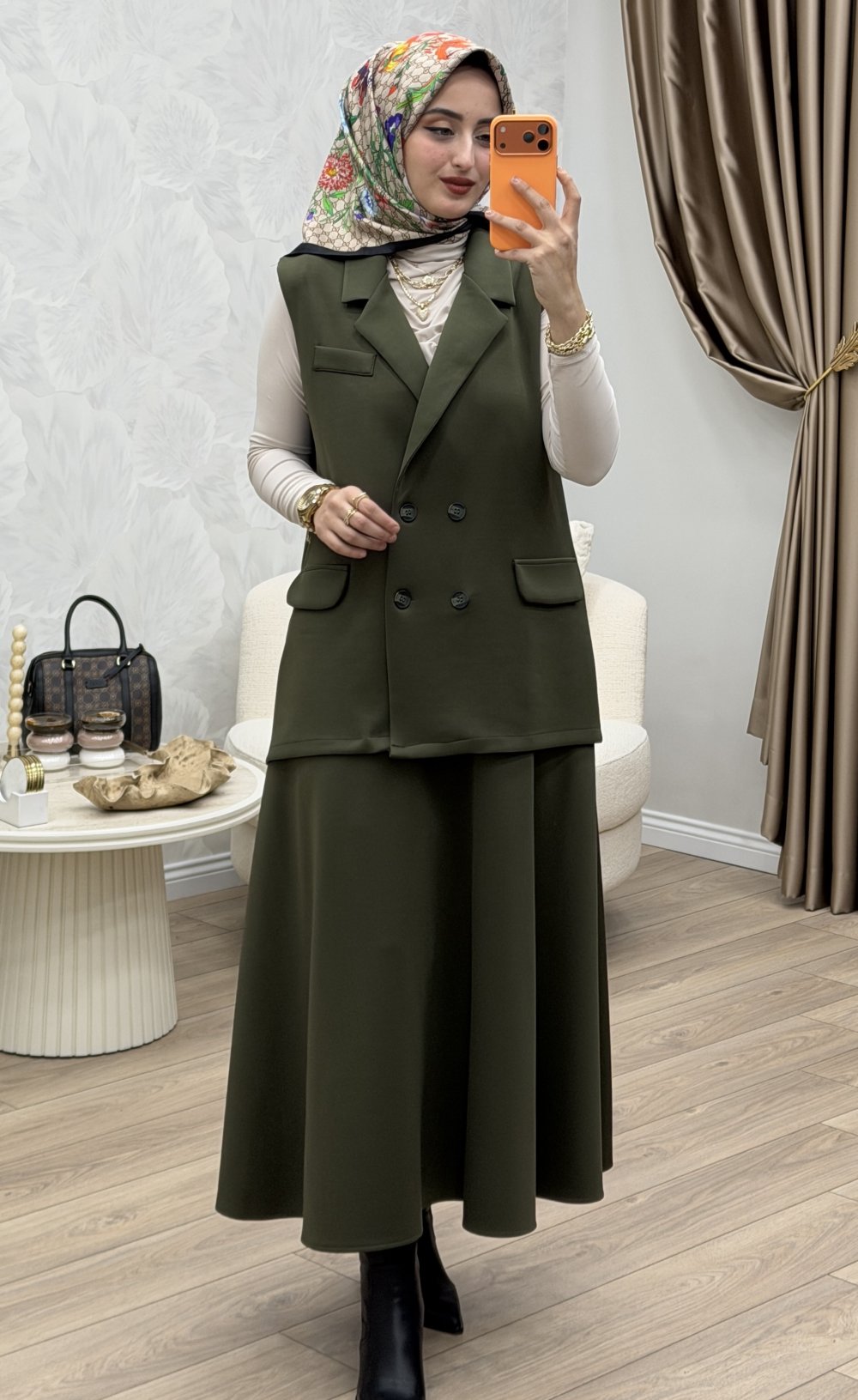 Nare Etek Takım,hem iş hem de günlük hayatınızda rahatlıkla tercih edebileceğiniz çok yönlü bir parçadır. Şıklığı konforla buluşturan bu tasarım, sezonun en gözde modellerinden biri olacak