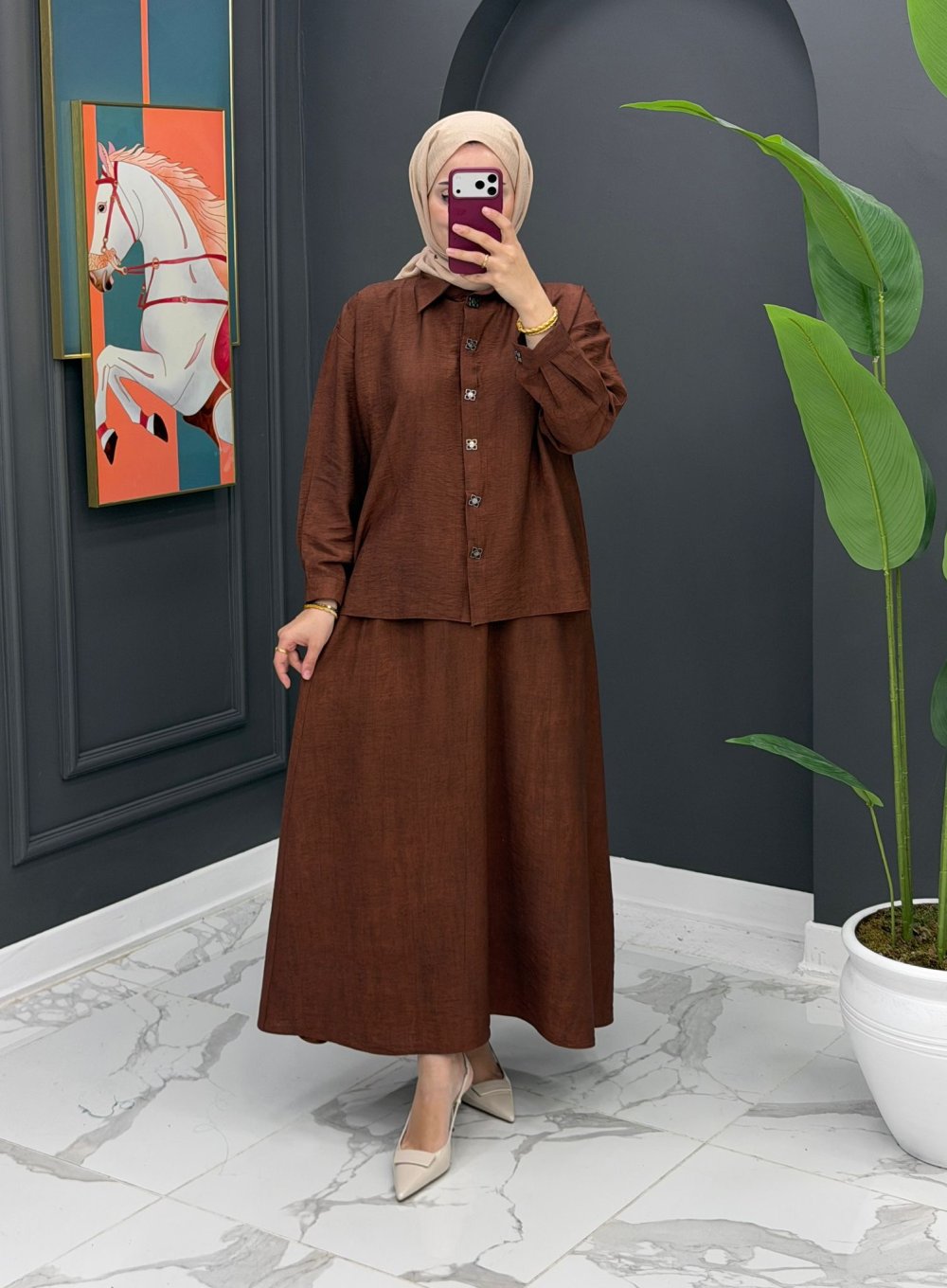 Nehir Etekli Takım- kahverengi
