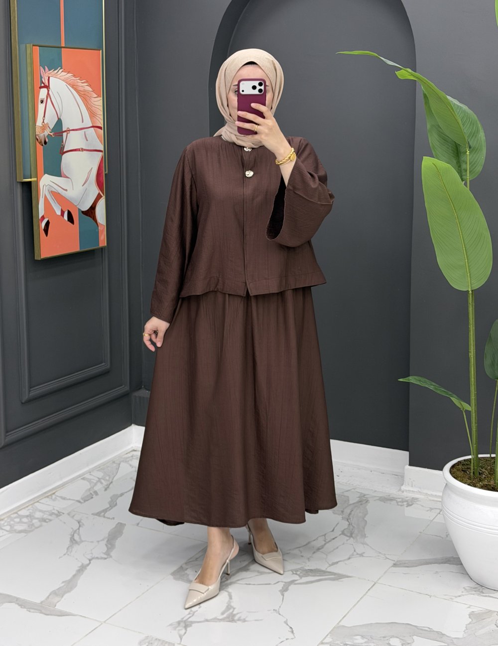 Neşe Etekli Takım - Kahve