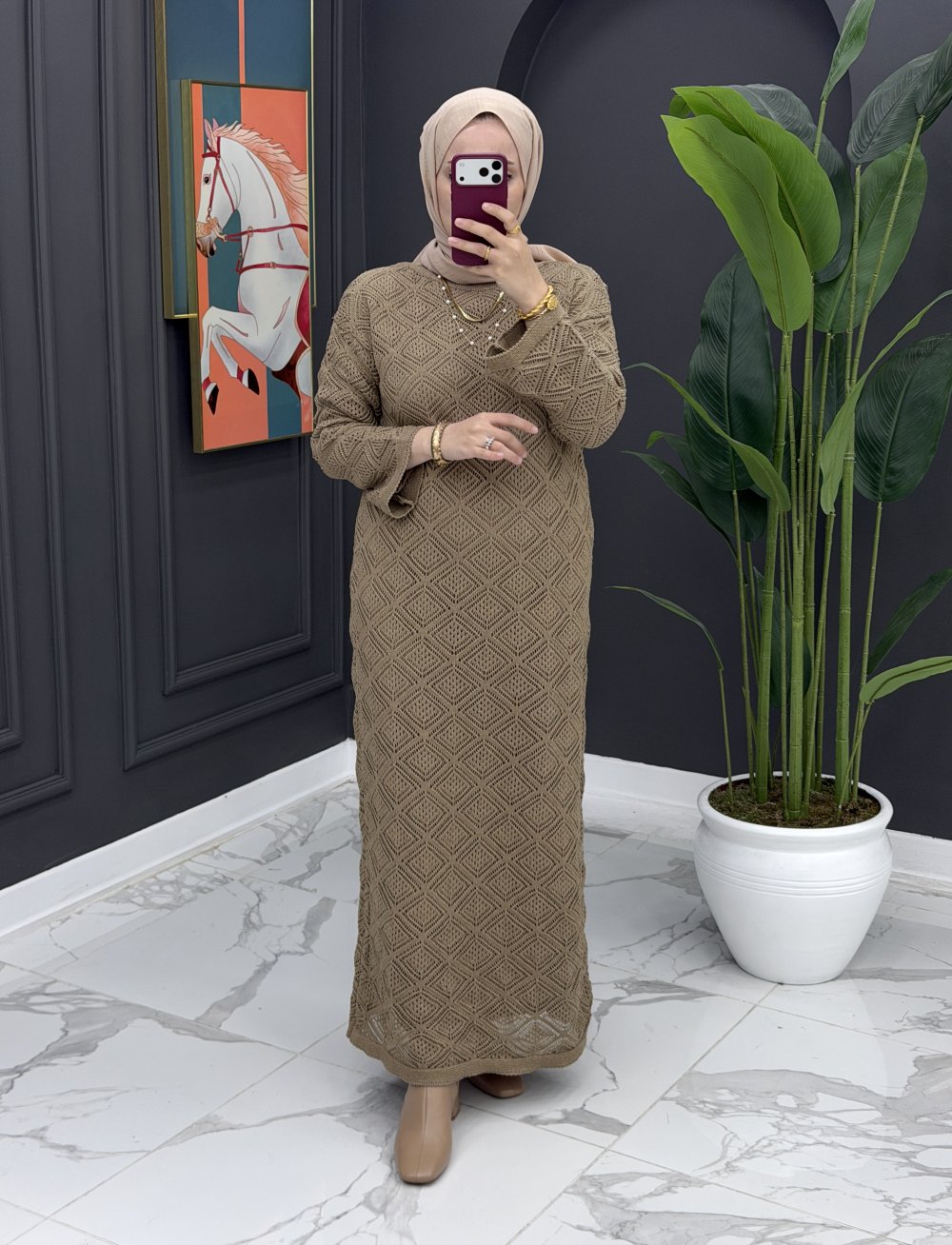 Örme İçlikli Elbise - Camel