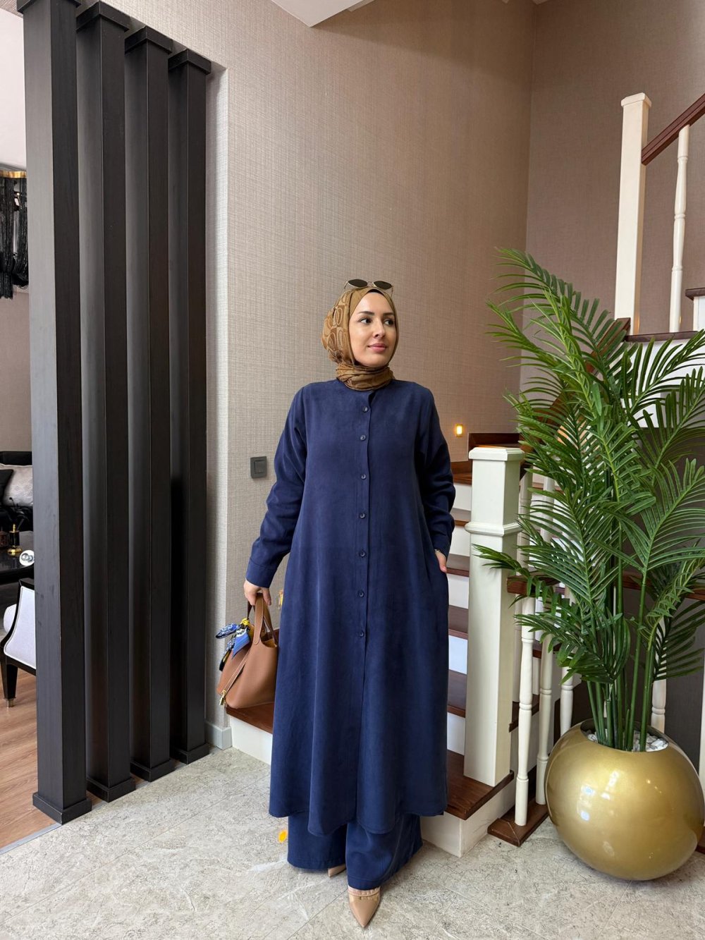 Tunik boy 125 cm’dir. Önden düğmeli, yanında cepleri ve yırtmaçları mevcuttur.