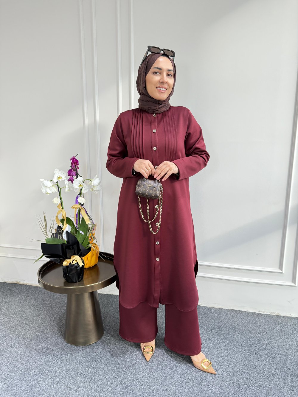 Tunik boy 115 cm’dir. Önünde gold düğme ve nervürü bulunmaktadır.