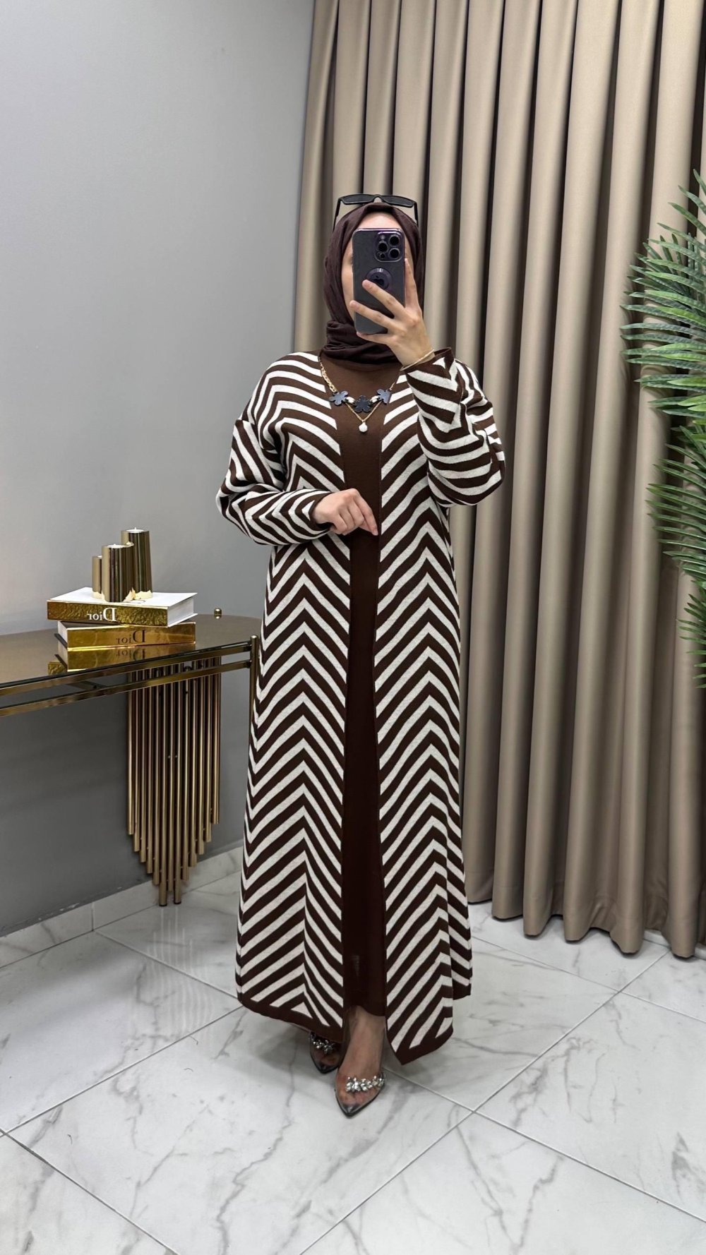 Sevde Hırka Kap Elbise Takım Kahve