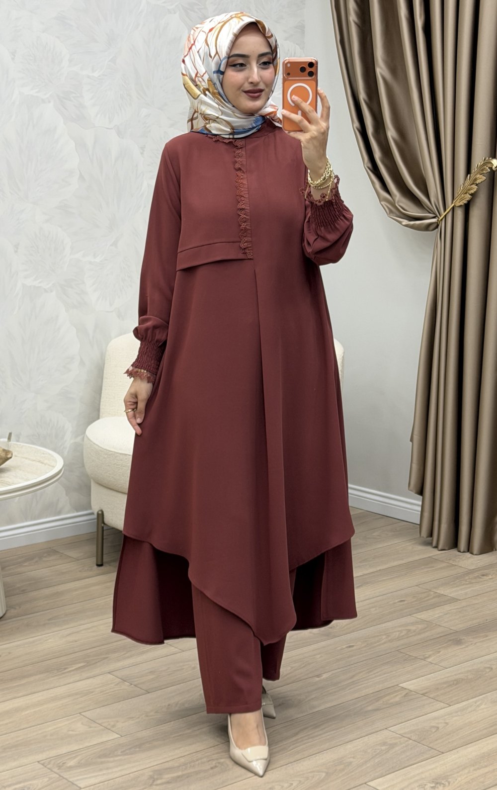 Tülin Takım,hem iş hem de günlük hayatınızda rahatlıkla tercih edebileceğiniz çok yönlü bir parçadır. Şıklığı konforla buluşturan bu tasarım, sezonun en gözde modellerinden biri olacak